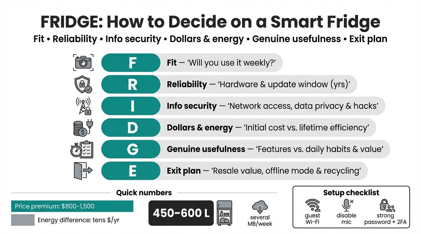 Decide if a connected fridge fits your Aussie or Kiwi home - clear trade-offs on cost, energy, privacy and reliability, plus the FRIDGE framework and a practical buying checklist.