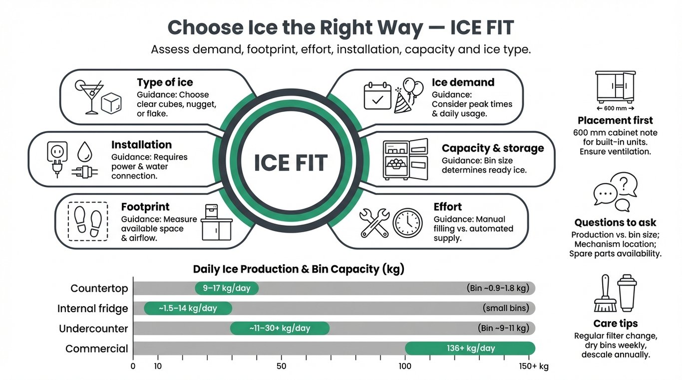Stop wasting freezer space and service calls. Learn how placement, capacity and maintenance determine the best icemaker for your home with the ICE FIT framework.
