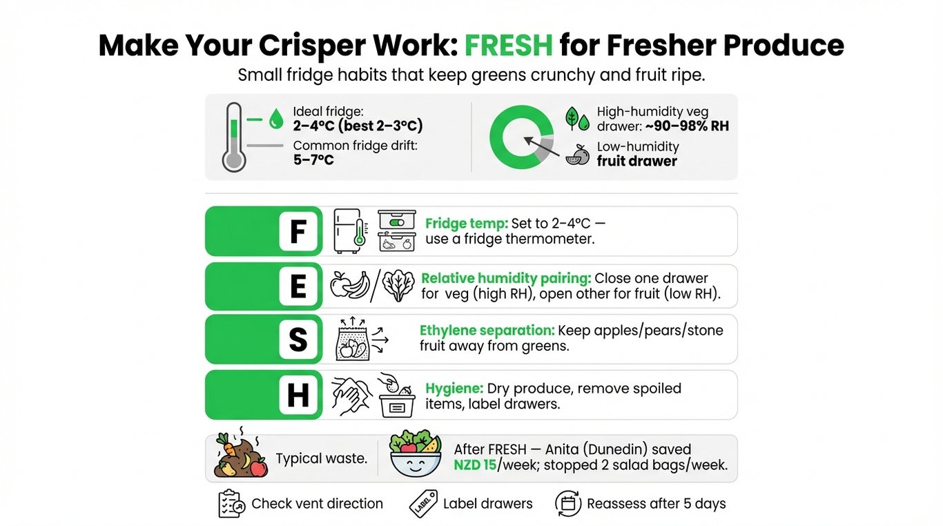Discover how one small crisper vent controls humidity and ethylene to add days to fruit and veg life - simple fridge settings to reduce waste and save money.
