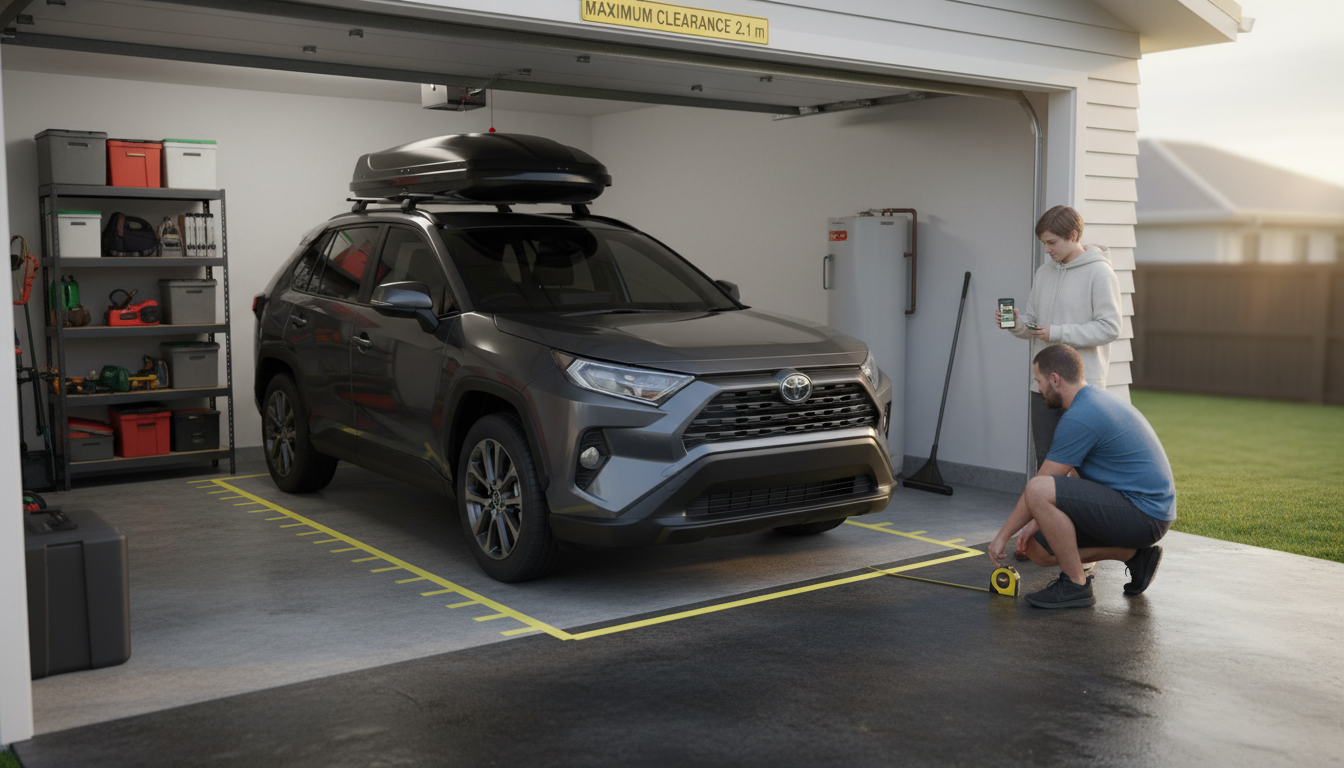 Picture this: it’s bucketing down. You nose up to your 2.4 m garage door. Mirrors out, you’ve got two hands on the wheel and one eye on the downpipe. The reversing sensors are shrieking even before you cross the threshold because your shelving nibs 200 mm into the bay. You edge forward, the roller door closes, and you can’t open the driver’s door wide enough to lift the pram out of the footwell. Later, you drive to a hospital appointment and hit a 2.1 m height bar with a sickening thud because you forgot the bikes were on the roof.